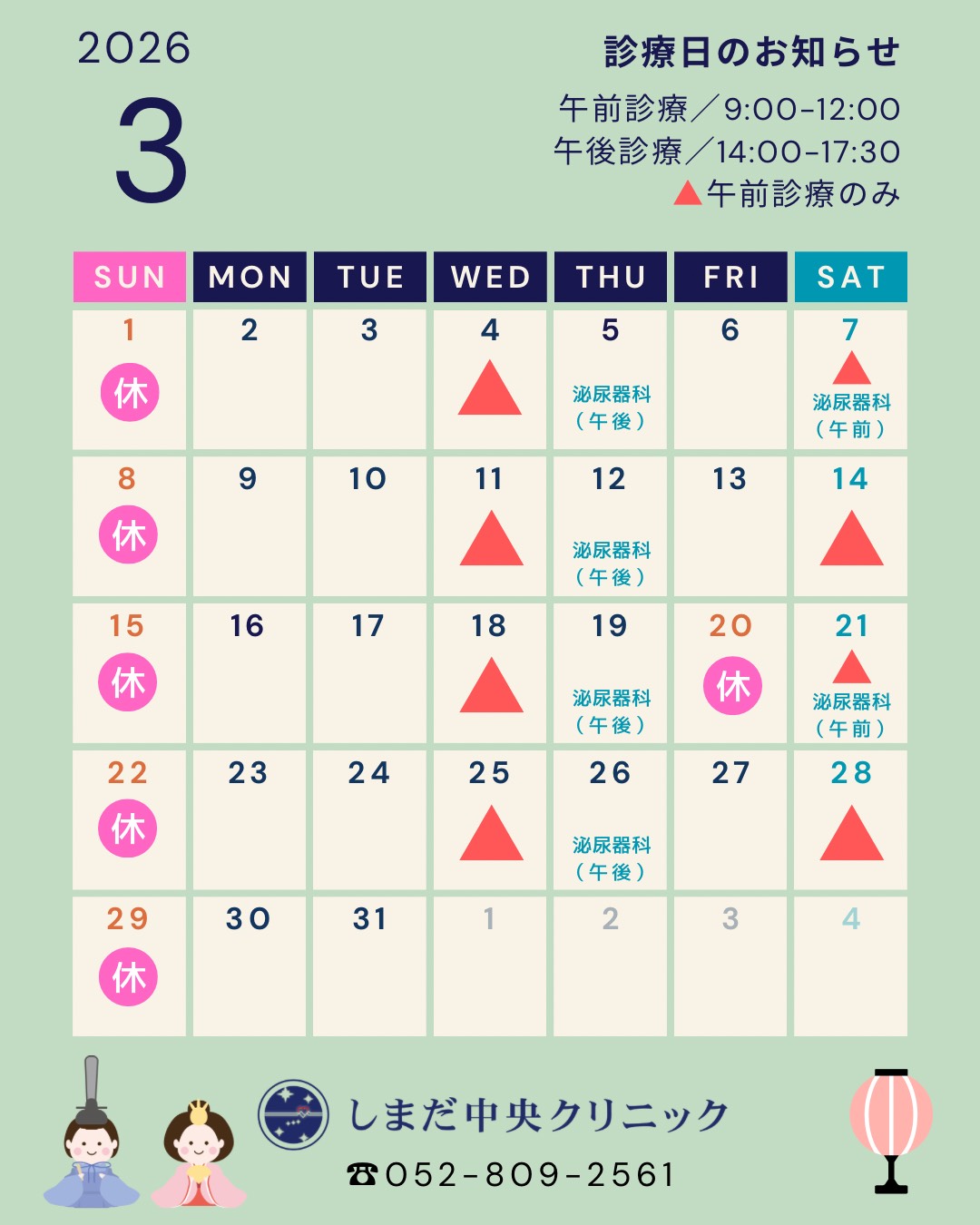 「しまだ中央クリニック」は、内科、循環器内科、泌尿器科、小児科、睡眠時無呼吸症候群、