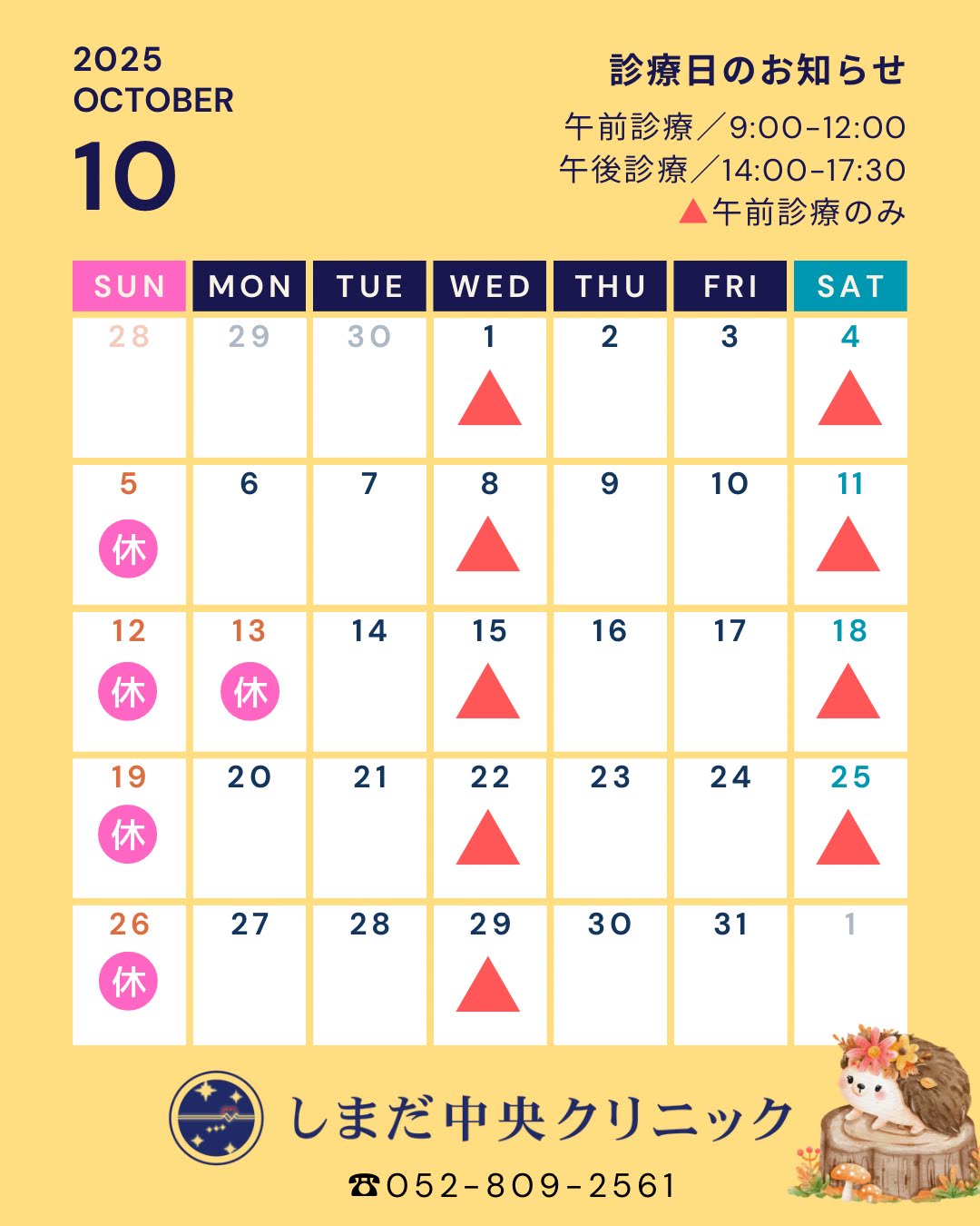 9月の休診日のお知らせ
