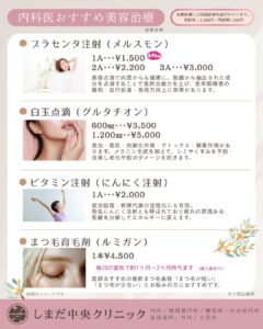 ③「美容注射」等の取り扱いを開始しました【プラセンタ注射・ビタミンの注射・白玉(グルタチオン)点滴・まつ毛育毛】
